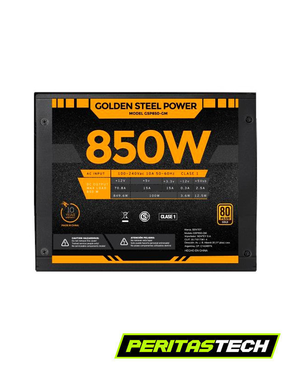 La Fuente Sentey GSP850-GM 850W combina alto rendimiento y eficiencia energética con certificación 80 Plus Gold, ideal para equipos exigentes. Compatible con el estándar ATX 3.1 y conector PCIe Gen 5 (PG5), está lista para las GPUs más modernas. Su diseño modular facilita una instalación limpia y un mejor flujo de aire, garantizando estabilidad, potencia constante y larga vida útil en configuraciones gamer o profesionales.
