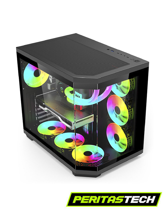 GABINETE GAMER SIN BISEL SLX CUBE CM-B950-SF TG BLACK 4FAN ARGB