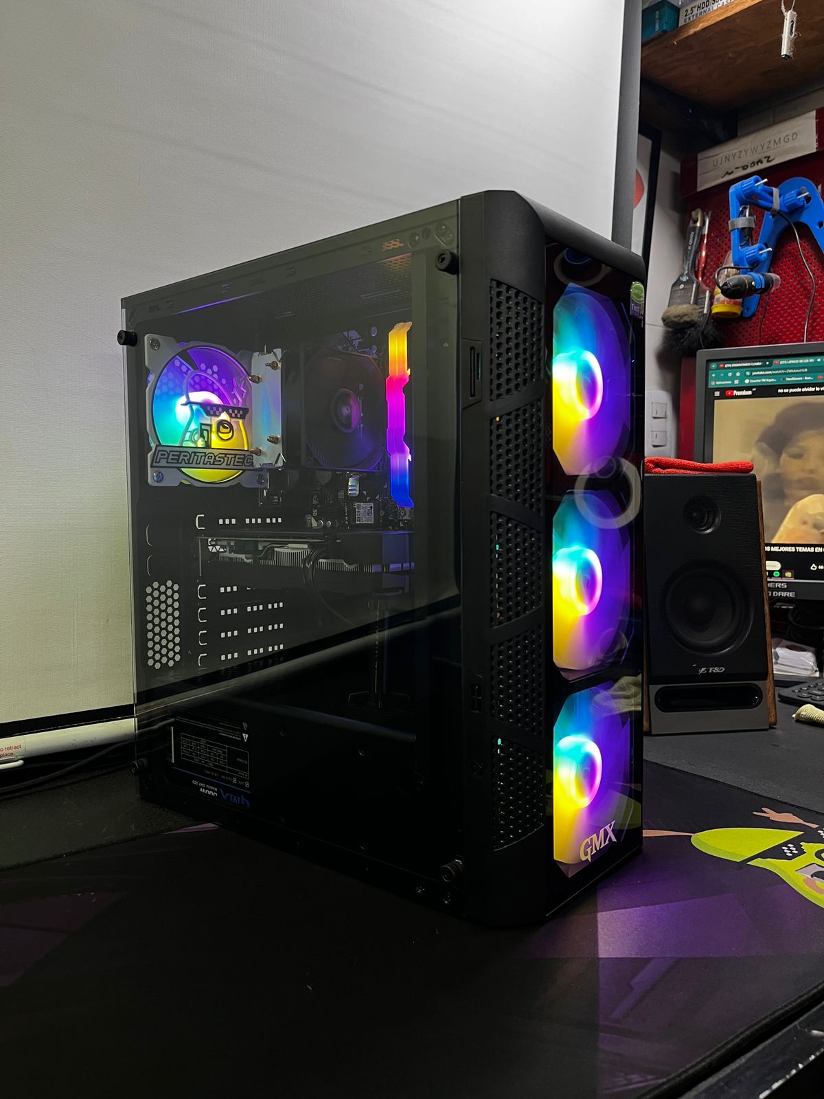 GABINETE GAMER GMX 170 MESH 4 FANES FRGB VIDRIO + FUENTE 500W VOLTAJE REAL