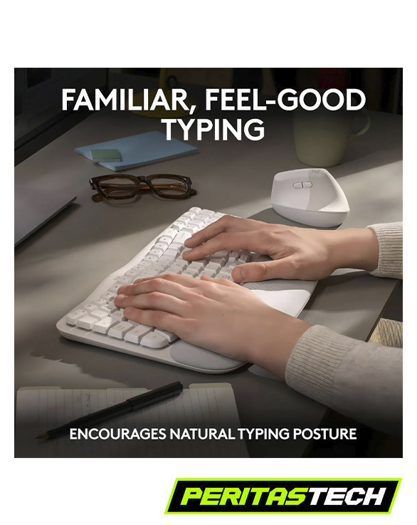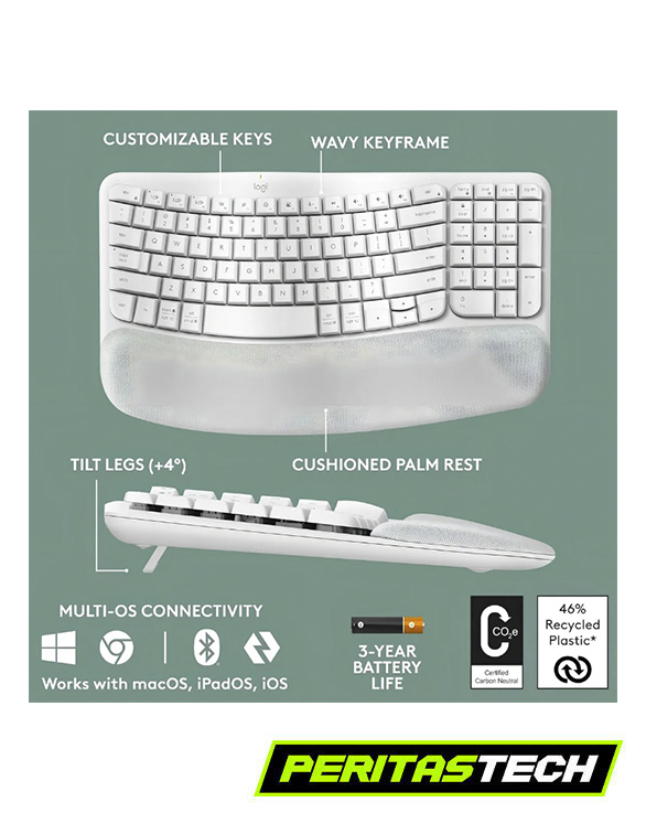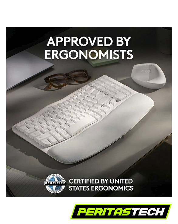🍐El Logitech Wave Keys Ergo es un teclado inalámbrico ergonómico diseñado para ofrecer máxima comodidad durante largas jornadas de trabajo o estudio. Su diseño ondulado y reposamanos acolchado mantienen las manos y muñecas en una posición natural, reduciendo la fatiga y mejorando la postura al escribir.